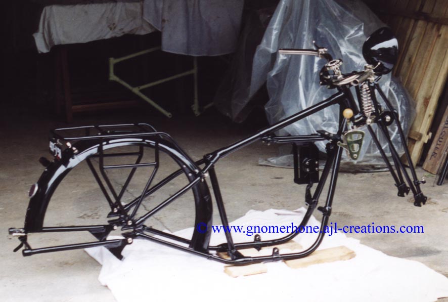La partie cycle est repeinte et le nickelage est refait, il reste a finir le moteur et trouver les quelques pièces manquantes (juin 2003). |